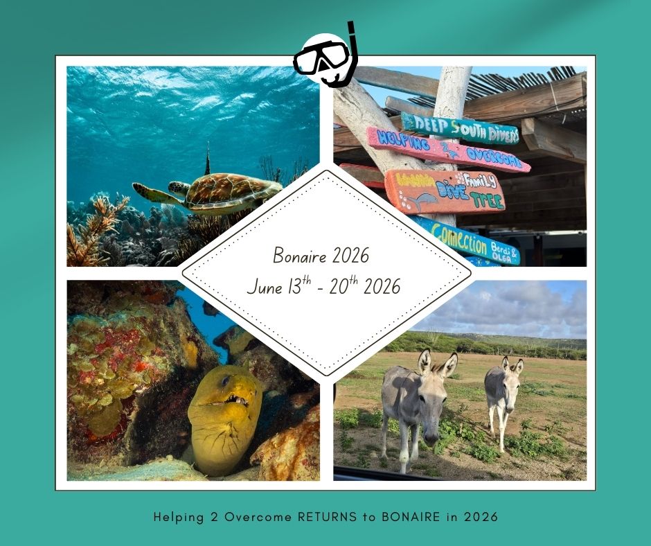 We are heading back to BONAIRE for 2026! After an amazing trip this past June and by overwhelming request Helping 2 Overcome is returning to the Grand Windsock Resort in the amazing Shore DIving Capital of BONAIRE!